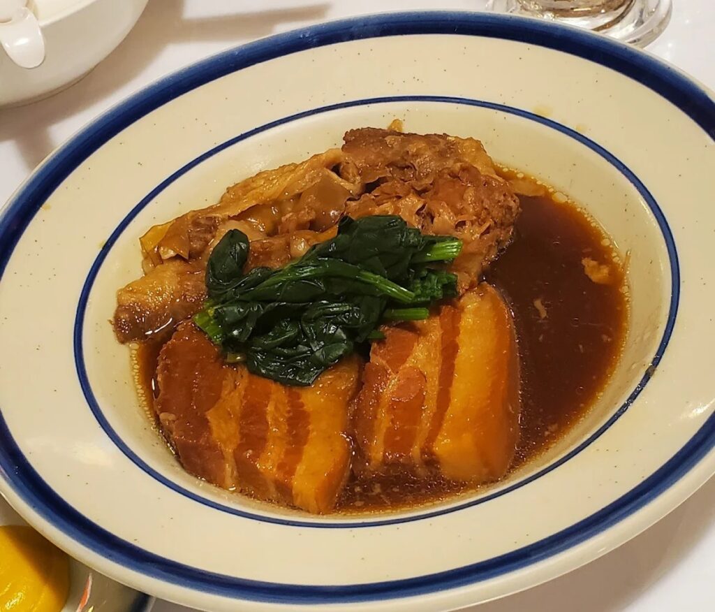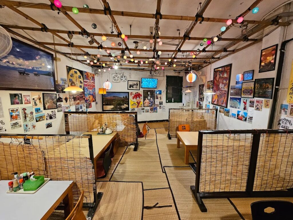 Okinawa Restaurant Kinjo เป็นร้านอาหารญี่ปุ่นต้นตำรับสไตล์โอกินาว่า ที่เปิดมายาวนานกว่า 17 ปี เป็นอีกหนึ่งร้านอาหารที่อยากแนะนำในย่านนี้เลย ร้านนำเสนออาหารพื้นเมืองของโอกินาว่าที่ไม่เหมือนใคร โดยเฉพาะเมนูราฟูเต้ (Rafute) หรือหมูสามชั้นตุ๋นซีอิ๊ว ที่ตุ๋นจนเปื่อยนุ่มละลายในปาก และจิมามิโทฟุ (Jimami Tofu) เต้าหู้ถั่วลิสงสัมผัสหนึบ ๆ คล้ายโมจิ นอกจากนี้ยังมีเมนูสุขภาพอย่างโกยะจัมปุรุ (Goya Champuru) มะระผัดสไตล์โอกินาว่าที่อร่อย ทานง่าย และที่ว้าวสุด ๆ คือมีเซ็ตอาหารกลางวันที่คุ้มค่ามาก ราคาเริ่มต้นแค่ 199 บาท อีกเมนูที่พลาดไม่ได้คือ ชิโอยากิโซบะโอกินาว่า ยากิโซบะเส้นเหนียวหนึบ รสชาติดีงามตามแบบฉบับโอกินาว่า ราคาต่อหัวอยู่ที่ประมาณ 200-400 บาท
