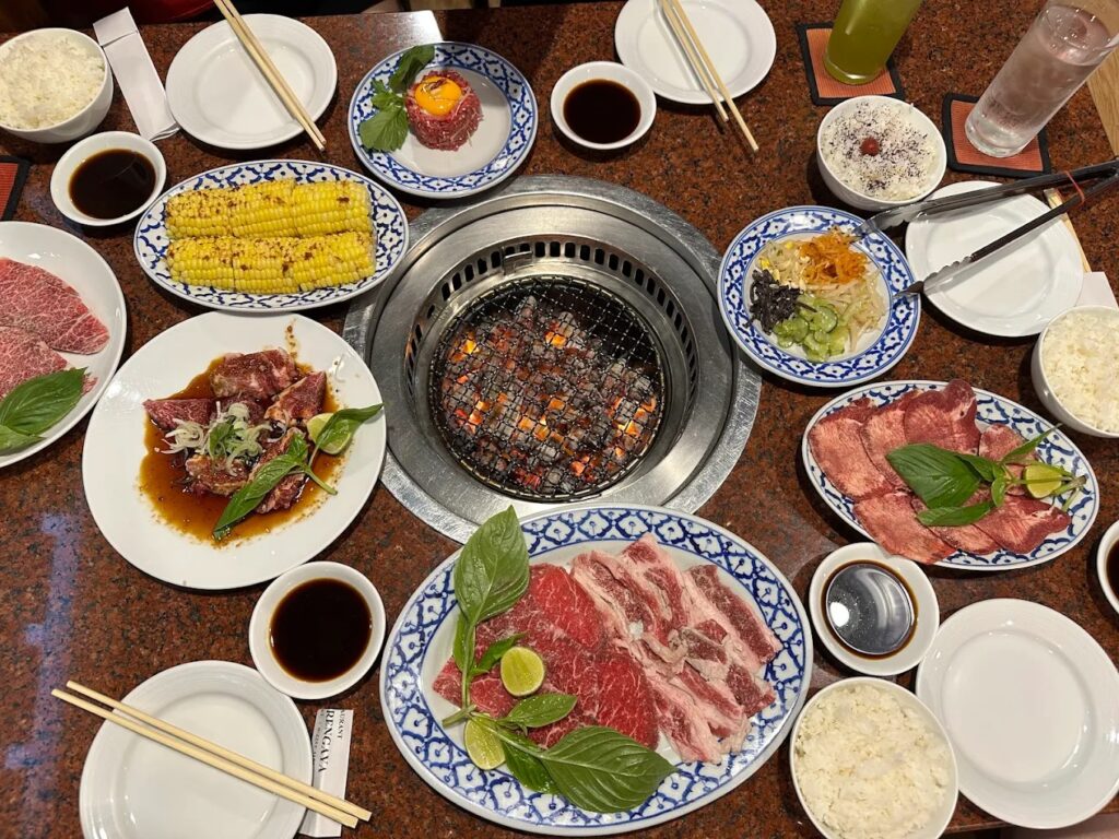 ใครที่มองหาร้านสไตล์ปิ้งย่างยากินิคุในย่านเพลินจิต ต้องมาโดนที่นี่เลย ร้านนี้ถือเป็นร้านปิ้งย่างในตำนานที่เปิดมานานกว่าสิบปี ตั้งอยู่ที่ตึกเพลินจิตเซ็นเตอร์นี่เอง รับประกันความฟินจากสูตรน้ำจิ้มเด็ดๆ และวัตถุดิบที่บินตรงมาจากโตเกียวเลยนะ ที่นี่มีให้เลือกทั้งเนื้อวัว เนื้อหมู และซีฟู้ดสดๆ ใครเป็นสายเนื้อวากิวพรีเมียม บอกเลยว่าฟินแน่นอน นอกจากเนื้อจะดีงามแล้ว ลิ้นวัวหมักมิโสะของที่นี่ก็อร่อยจนหลายคนติดใจ สัมผัสหนึบๆ เคี้ยวเพลินสุดๆ อีกอย่างที่เด็ดไม่แพ้กันคือ เซ็ตอาหารกลางวัน ที่มีให้เลือกทั้งชุดปิ้งย่างและเมนูอื่นๆ เช่น กุ้งเทมปุระ แถมราคายังน่ารักด้วย ตกอยู่ที่คนละประมาณ 350-800 บาท