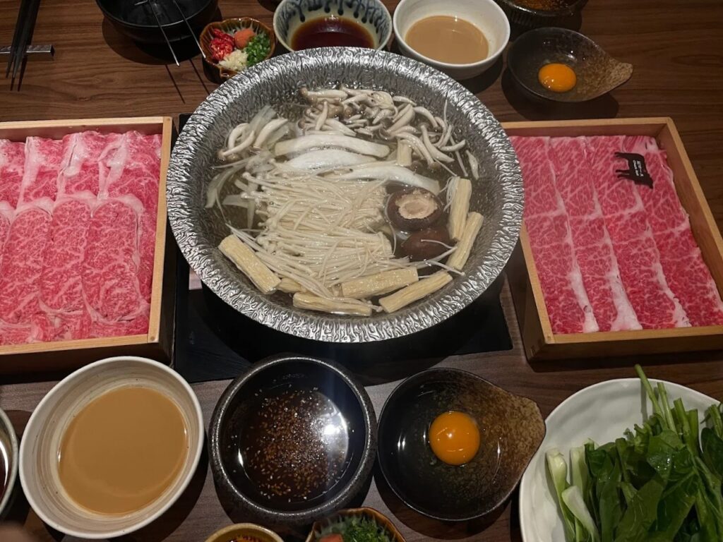 ร้านชาบูชาบู-สุกี้ยากี้แบบพรีเมียมในย่านเพลินจิต บนชั้น 5 ห้า Central Embassy ที่นี่เสิร์ฟอาหารแบบคอร์สเหมือนไฟน์ไดนิ่ง โดยจะได้เลือกเซ็ตชาบูหรือสุกี้ยากี้ที่มาพร้อมเนื้อคุณภาพดีสุดๆ ตั้งแต่หมูคุโรบูตะไปจนถึงเนื้อวากิวเกรดพรีเมียมอย่าง เนื้อโอมิ (Oumi-Gyu) ที่นุ่มละมุนลิ้นแทบละลายในปาก พนักงานจะคอยดูแลและปรุงสุกี้ยากี้ให้แบบมืออาชีพ ในคอร์สไม่ได้มีแค่เนื้ออย่างเดียวนะ แต่มีทั้งเมนูเรียกน้ำย่อย ชุดผักสดหลากหลายชนิดที่เติมได้ไม่อั้น แถมยังมีเต้าหู้โฮมเมดเนื้อนุ่มนิ่มให้ฟินอีกด้วย ปิดท้ายด้วยเมนูข้าวหรืออุด้งที่ผัดคลุกกับน้ำซุปสุกี้เข้มข้น และของหวานอร่อยๆ เป็นการจบมื้อที่อิ่มและฟินแบบครบเครื่องสุดๆ ราคาต่อหัวจะอยู่ที่ประมาณ1,000 บาท ขึ้นไป