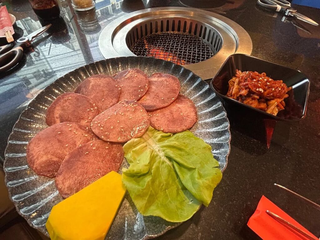 Korasha Yakiniku ร้านนี้ขึ้นชื่อเรื่องวัตถุดิบพรีเมียม ทีเด็ดของที่นี่คือ ลิ้นวัวหั่นหนา (Atsukiri Gyutan) ที่มาแล้วต้องสั่ง เนื้อลิ้นวัวจะมีความกรอบนอกนุ่มเด้งข้างใน ย่างพอดีๆ แล้วอร่อยจนลืมไม่ลง นอกจากนี้ยังมีเนื้อวากิวญี่ปุ่น A5 และเนื้อส่วนอื่นๆ ไม่ว่าจะเป็น เนื้อใบพาย หรือเนื้อซี่โครง และเมนูที่ถูกเสิร์ฟบ่อยๆ อย่างบะหมี่เย็น (Reimen) ที่ซุปรสออกเปรี้ยวเค็ม สดชื่นมากๆ กินตัดกับความมันของเนื้อย่างร้อนๆ ลงตัวสุดๆ ร้านมีบริการพนักงานช่วยย่างเนื้อให้ด้วยนะ ร้านตั้งอยู่ในโครงการ Taka Town สุดซอยเพชรบุรี 38/1 ราคาจะอยู่ที่ประมาณ 1,000-2,000 บาทขึ้นไปต่อคน