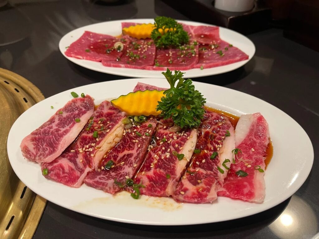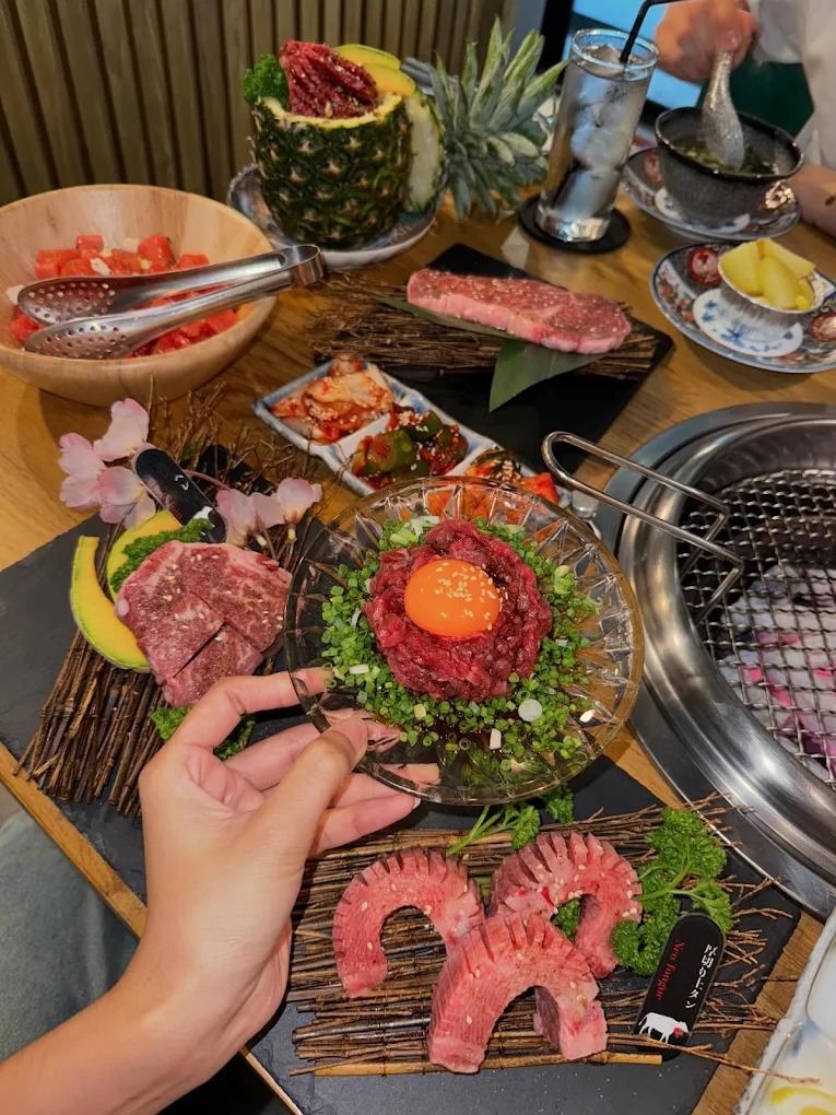 ร้านนี้ขึ้นชื่อเรื่องบุฟเฟต์ยากินิกุเกรดพรีเมียมที่มีหลายราคาให้เลือก และในแพ็กเกจราคาสูงสุดของร้านได้ใส่เนื้อคุณภาพเยี่ยมมาให้เลือกแบบไม่อั้น จุดเด่นอีกอย่างของร้านคือ การคัดสรรเนื้อวากิวชิ้นหนาๆ ที่นุ่มละลายในปาก และมีเมนูพิเศษที่คุ้มค่ามาก ๆ รวมอยู่ในเซ็ตบุฟเฟต์พรีเมียม เช่น เนื้อซี่โครงพิเศษ ลิ้นวัว และเมนูซีฟู้ดพรีเมียมในตำนานอย่าง ปูทาราบะ ยังมีหอยเชลล์ฮอกไกโดและเมนูอื่น ๆ อีกมากมายให้เลือกจนจุกไปเลย ราคาต่อหัวอยู่ที่ประมาณ 1,000-2,000 บาท