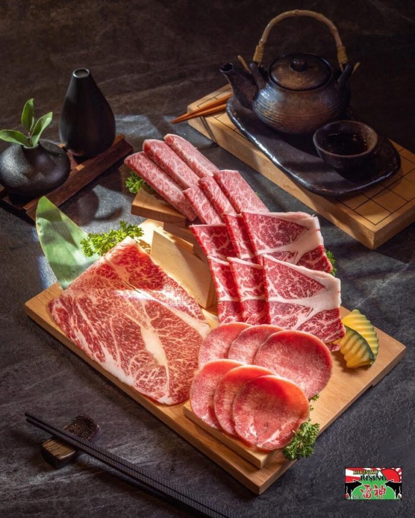 ร้านปิ้งย่างระดับพรีเมียม เป็นที่รู้จักกันดีในฐานะผู้บุกเบิกการนำเข้า Imperial Wagyu A มาเสิร์ฟในไทย จุดเด่นของร้านคือ การคัดสรรเนื้อวากิว A5 ที่มีใบรับรองคุณภาพ ลายหินอ่อนสวยงามแบบที่หาทานได้ยาก ทำให้ทุกคำที่ย่างบนเตาถ่านนั้นหอม นุ่ม และละลายในปาก นอกจากเมนู อะลาคาร์ทเนื้อพรีเมียมแล้ว บางช่วงร้านยังมีโปรโมชั่นบุฟเฟต์เนื้อ A5 เป็นโอกาสทองที่ห้ามพลาดของคนรักเนื้อที่อยากทานแบบไม่อั้นด้วยนะ เมนูอื่นๆ ที่ห้ามพลาดนอกจากเนื้อวากิว เช่น ลิ้นวัวย่างต้นหอม (Tokujyo Tan Shio) ซุปหางวัว ที่อุดมไปด้วยคอลลาเจน และปิดท้ายด้วยของหวานอย่าง พุดดิ้งลูกตาลมะพร้าวอ่อน บอกเลยว่าฟินครบจบในมื้อเดียว ราคาต่อหัวประมาณ 1,500-4,500 บาท