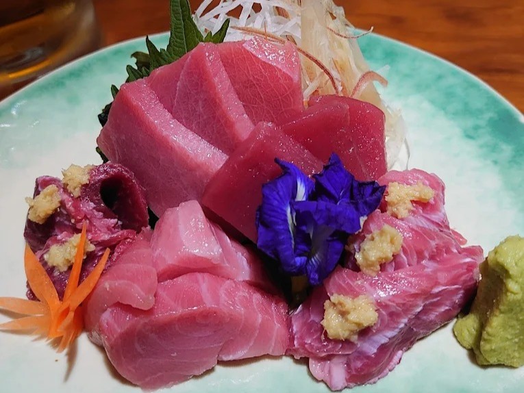 ซาชิมิที่นี่มีปลาให้ได้ลองชิมมากมาย ไม่ว่าจะเป็นปลาทูน่า (Maguro) ที่มีทั้งส่วนเนื้อแดง (Akami) จูโทโร่ (Chutoro) โอโทโร่ (Otoro) ปลาแซลมอน (Sake) ปลาฮามาจิ (Hamachi) หรือหอยโฮตาเตะ (Hotate) แต่ละชิ้นหั่นมาอย่างพิถีพิถันและสดใหม่สุดๆ นอกจากซาชิมิและซูชิหน้าต่างๆ แล้ว ยังมีเมนูซูชิโรลที่หลากหลายและสร้างสรรค์ บางเมนูก็มีรสชาติฟิวชันที่น่าสนใจและเป็นเอกลักษณ์ของร้าน มีเมนูย่างต่างๆ เช่น ปลาซาบะย่างซีอิ๊ว หัวปลาแซลมอนย่าง หรือเมนูจานร้อนอื่นๆ เช่น เทมปุระ อุด้ง ราเมง และข้าวหน้าต่างๆ ที่ปรุงอย่างพิถีพิถันและอร่อยไม่แพ้กัน