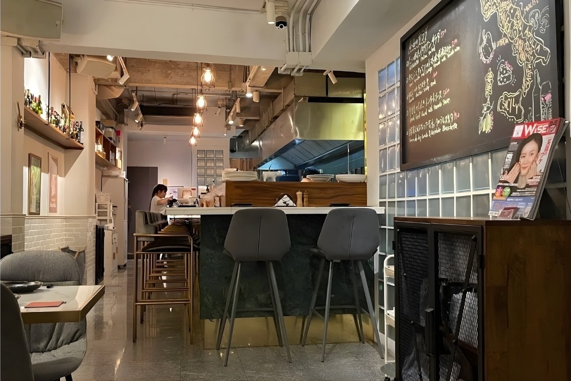 ตกแต่งในสไตล์บิสโทรที่ให้ความเป็นกันเองและอบอุ่น เน้นที่นั่งเคาน์เตอร์ที่เหมาะสำหรับการมาทานคนเดียว หรือโต๊ะสำหรับกลุ่มเพื่อนสังสรรค์