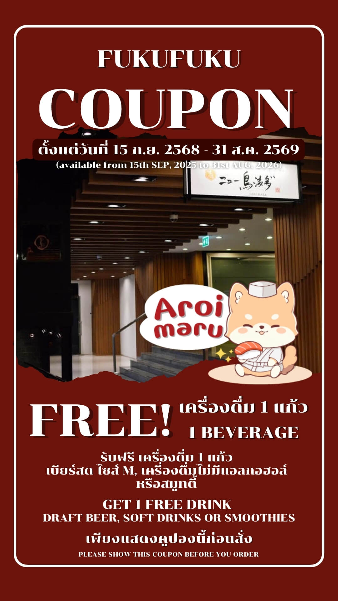 บรรยากาศภายในร้านถูกออกแบบให้มีความโปร่งสบายแต่ยังให้ความรู้สึกเป็นส่วนตัว มีที่นั่งหลากหลายโซนให้ได้เลือกสรร พนักงานทุกคนพร้อมให้บริการด้วยความใส่ใจแบบโอโมเตะนาชิ (Omotenashi) และสามารถแนะนำการจับคู่เมนูอาหารกับเครื่องดื่มได้อย่างมืออาชีพ เพื่อสร้างความประทับใจและความสุขให้แก่ลูกค้าทุกคน✨