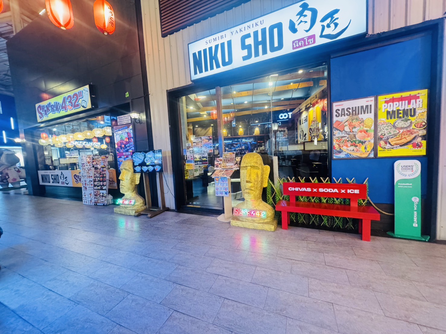 SHAKARIKI 432 สาขา The Paseo Park โดดเด่นด้วยการรวมสองอาหารญี่ปุ่นยอดนิยมไว้ด้วยกัน นั่นคือ ยากินิกุหรือปิ้งย่างสไตล์ญี่ปุ่น และอาหารสไตล์อิซากายะ ทำให้สามารถเพลิดเพลินได้ทั้งการย่างเนื้อคุณภาพดีและการสังสรรค์ในบรรยากาศแบบญี่ปุ่นแท้ ๆ ไปในเวลาเดียวกัน ร้านเน้นการตกแต่งที่ดึงบรรยากาศอิซากายะแบบญี่ปุ่นที่ดูดีและทันสมัย ที่นั่งนั่งสบาย ทำให้เหมาะกับการสังสรรค์ สร้างความรู้สึกที่ผ่อนคลายและสนุกสนาน